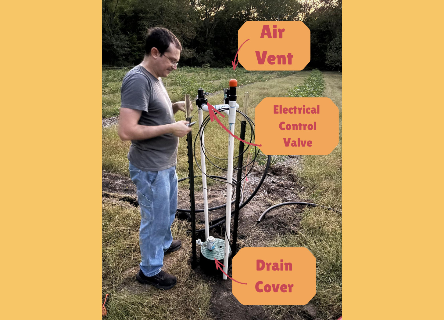 To get it right, I worked with Craig Pisarkiewicz at MPR Supply, who has decades of experience designing irrigation systems for farmers. We handled everything by phone and email as he was able to access terrain maps remotely. Craig’s guidance on irrigation zones and weekly runtimes was especially helpful.